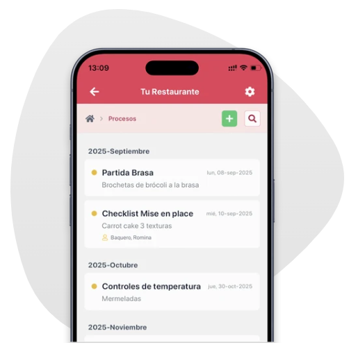 Consulta y comparte todas tus fichas de producción de manera sencilla. Añade vídeos e imágenes para que cada elaboración se mantenga exactamente igual en todos tus locales, asegurándote la estandarización de la oferta gastronómica.