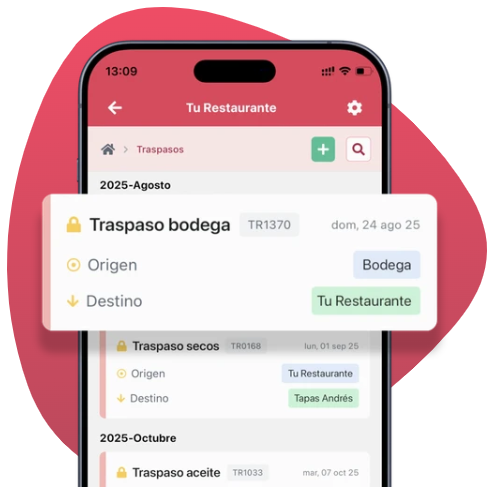 Registra y deja constancia de todos los movimientos entre tus locales, controlando tanto el origen como el destino de cada traspaso (ej: bodega-barra). Gestiona toda la información de manera centralizada para mantener un control preciso y evitar pérdidas o errores.